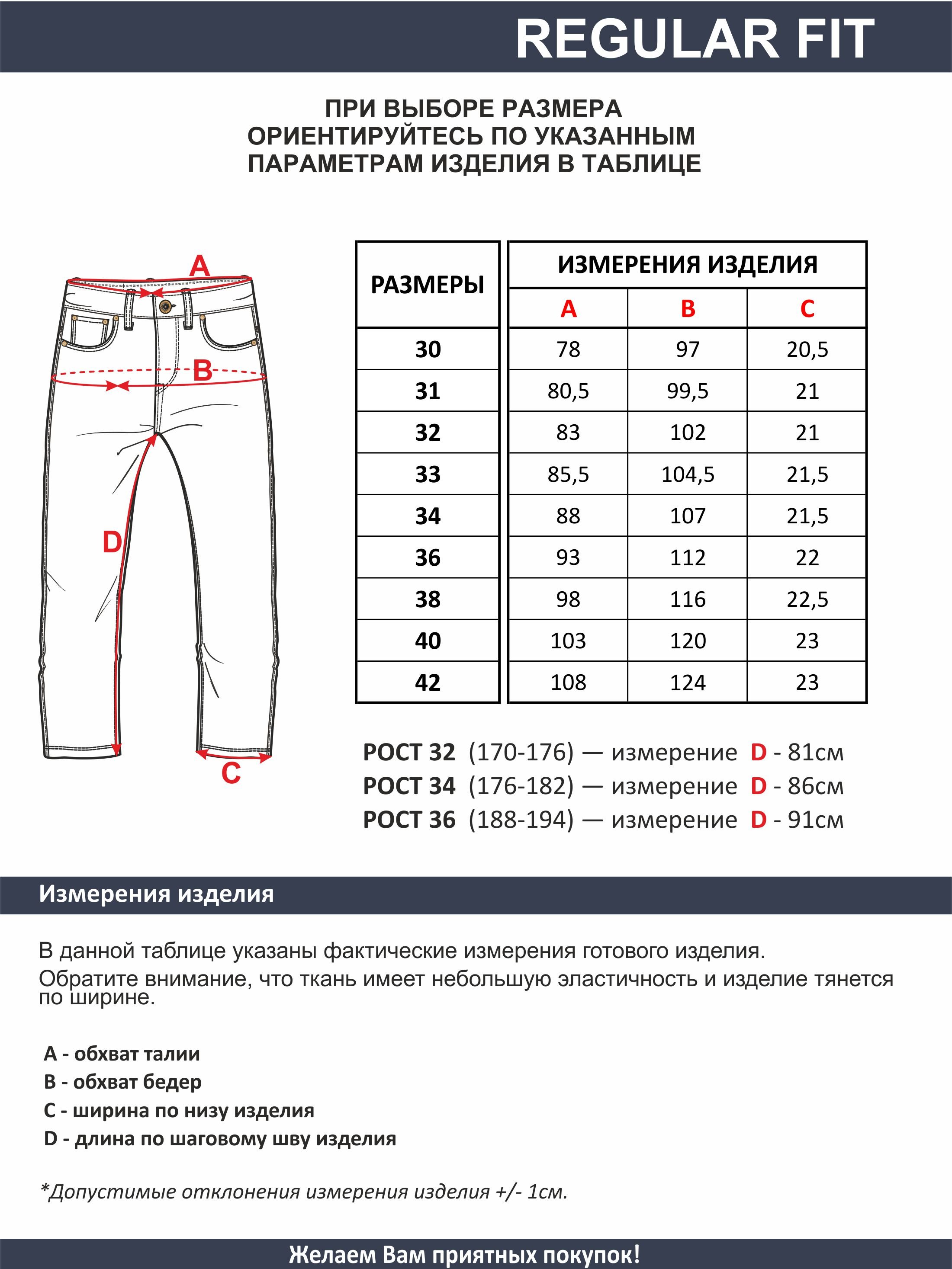 - Классический Regular Fit: Удобный прямой крой со слегка зауженными к низу штанинами обеспечивает свободу движений и подходит для различных стилей - от повседневного до более строгого.