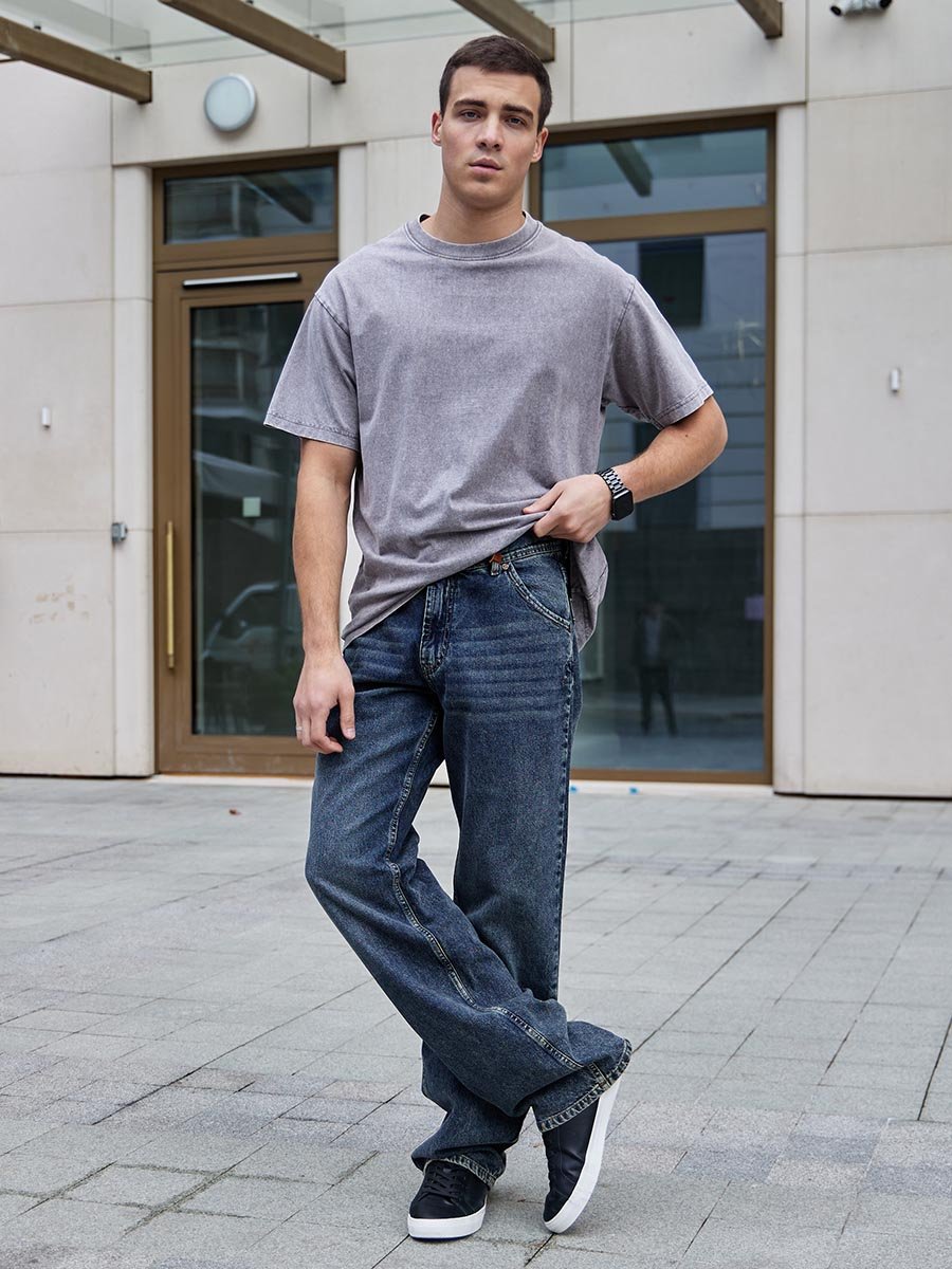 Окунитесь в эпоху легендарных 90-х с нашими винтажными джинсами! Эти мужские джинсы с пятью карманами, высокой посадкой, широким кроем штанин и с застежкой на молнию созданы для тех, кто ценит свободу движений и дизайн в стиле casual. Эта модель предлагает не просто одежду, а чувство уверенности и уникальный ретро образ, который снова на пике моды. Изготовлены из традиционного денима средней плотности. Постираны по технологии каменной стирки (stone wash), поэтому вы ощутите мягкость и комфорт с первой же примерки. Для получения эффекта дополнительной состаренности джинсы постираны по технологии тинтования "GET DIRTY" чтобы получить эффект апачканных джинсов.