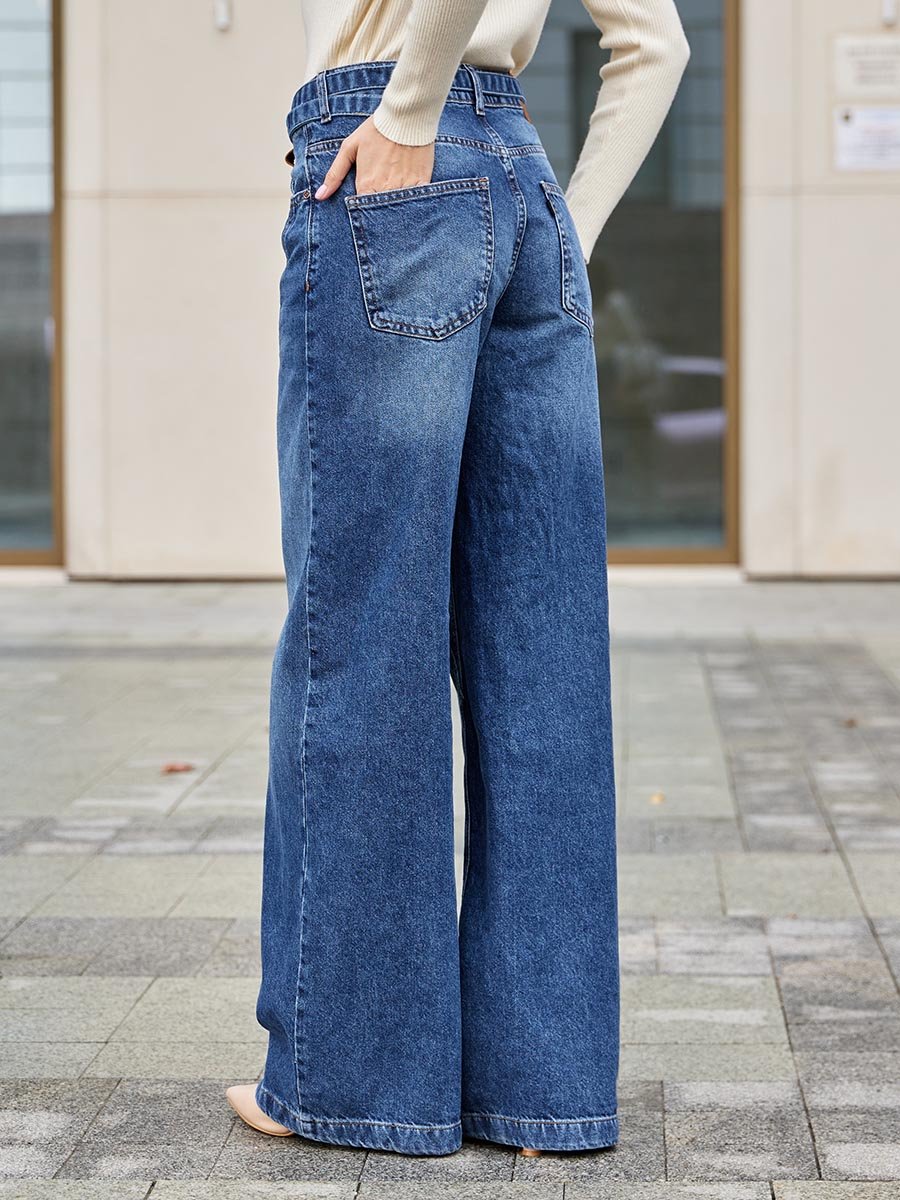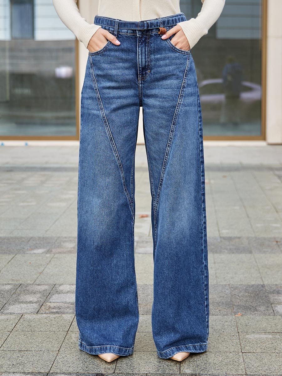 Широкие брюки ПАЛАЦЦО (PALAZZO) с завышенной талией из джинсовой ткани - по прежнему в тренде. Мы создали обновленный дизайн с уникальным кроем и получили новый эксклюзивный образ не похожий на все другие брюки ПАЛАЦЦО. Главная изюминка - диагональный конструктивный шов на передних половинках брючин. Эта дизайнерская деталь визуально стройнит ноги, создает сложный и невероятно стильный объем. В комплекте идет стильный ремень, выполненный из той же джинсовой ткани. Он позволяет подчеркнуть линию талии сделать акцент на завышенную посадку и завершить образ в единой стилистике. Изготовлены из традиционного денима в винтажном стиле с усами и потертостями.