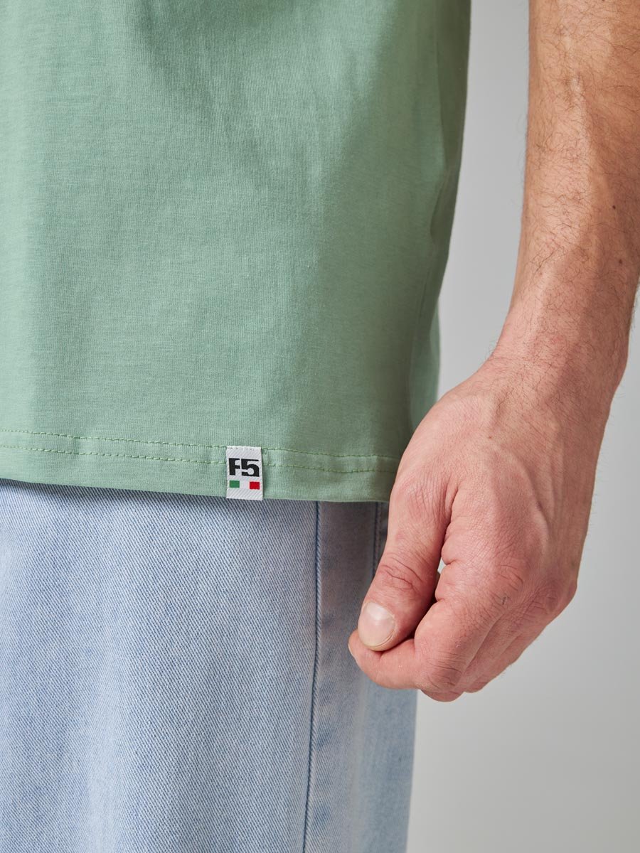 Мужская футболка F5, Regular fit (полуприлегающий силуэт), круглый вырез горловины, короткий рукав. Выполнена из классического трикотажного полотна.