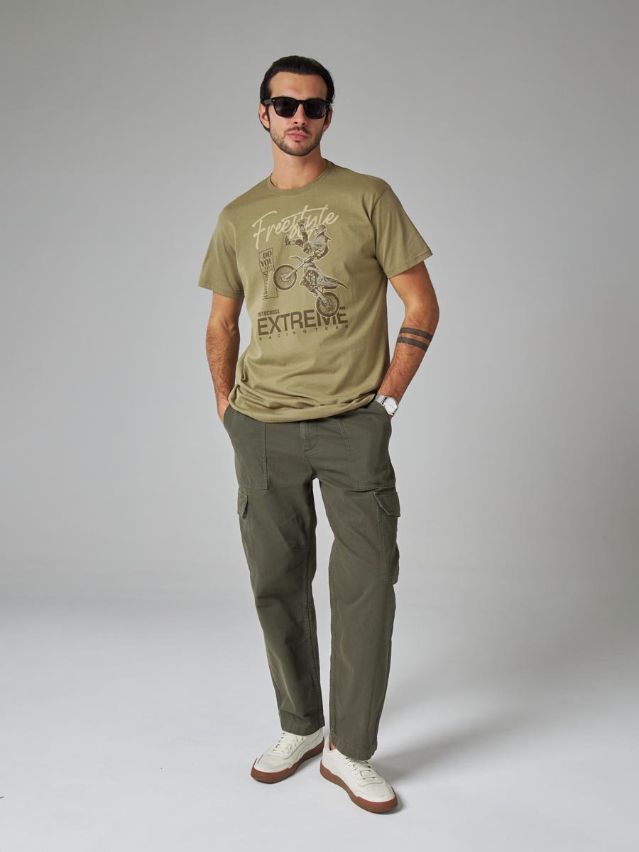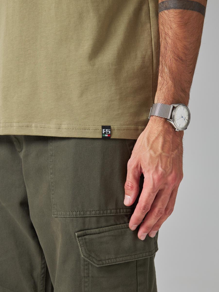 Мужская футболка F5, Regular fit (полуприлегающий силуэт), круглый вырез горловины, короткий рукав. Выполнена из классического трикотажного полотна.