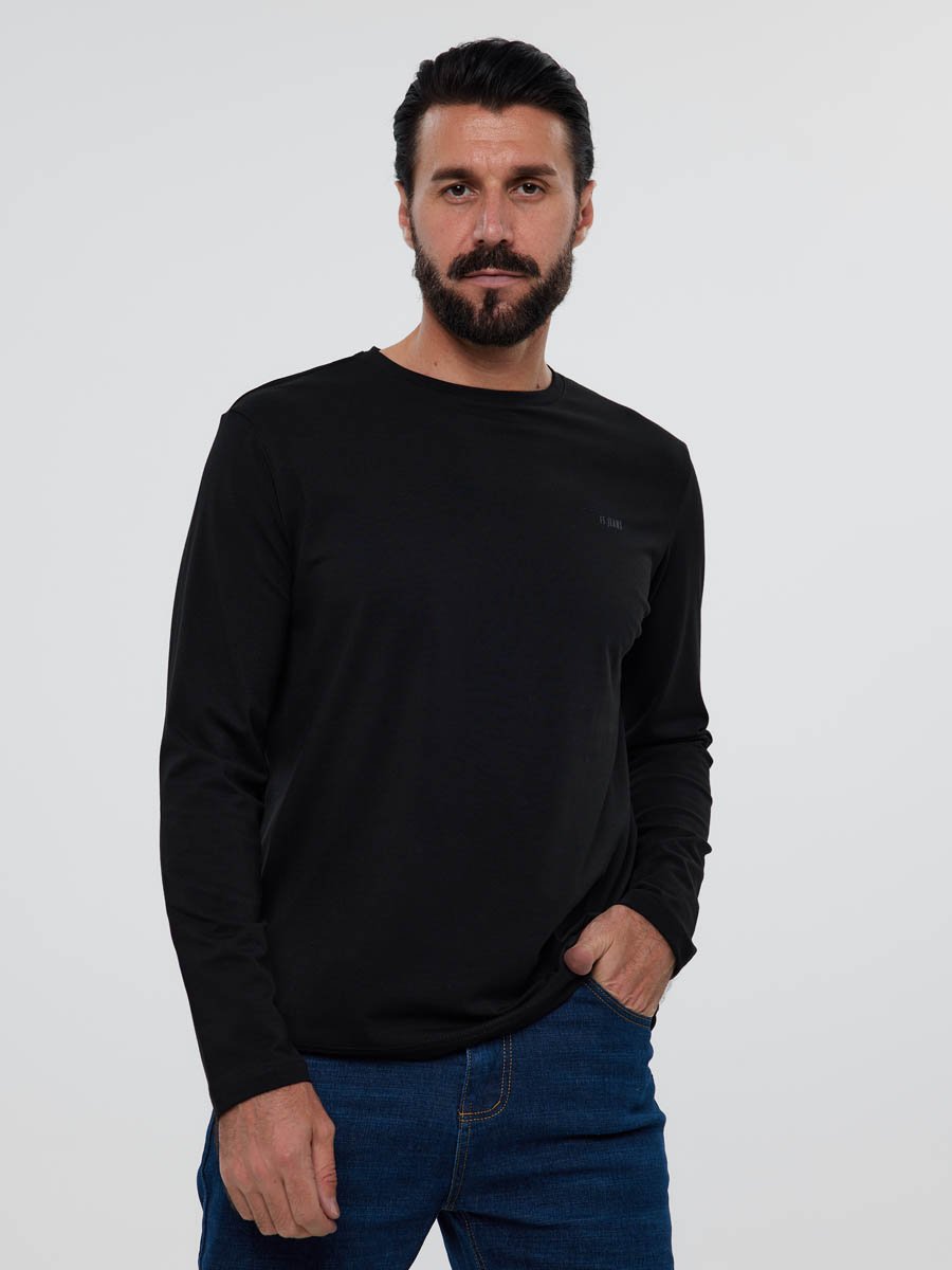 Мужская футболка F5, Regular fit (полуприлегающий силуэт), круглый вырез горловины, длинный рукав. Выполнена из классического трикотажного полотна.