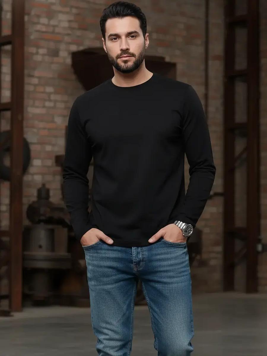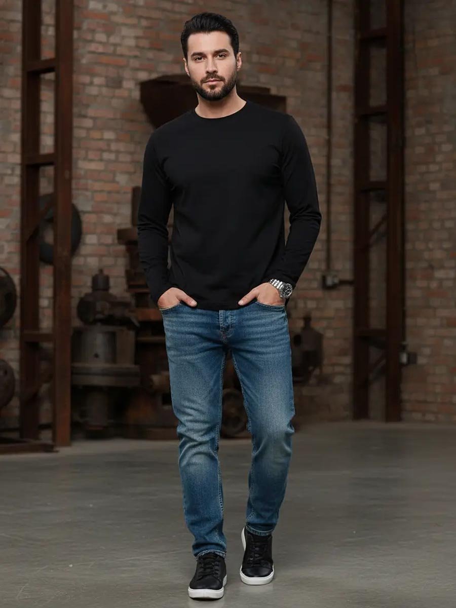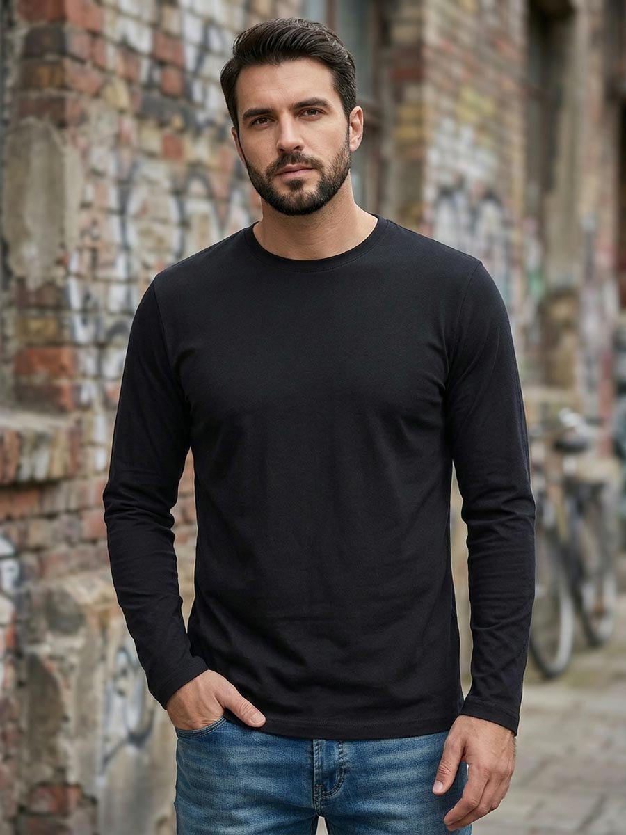 Мужская футболка F5, Regular fit (полуприлегающий силуэт), круглый вырез горловины, длинный рукав. Выполнена из классического трикотажного полотна.