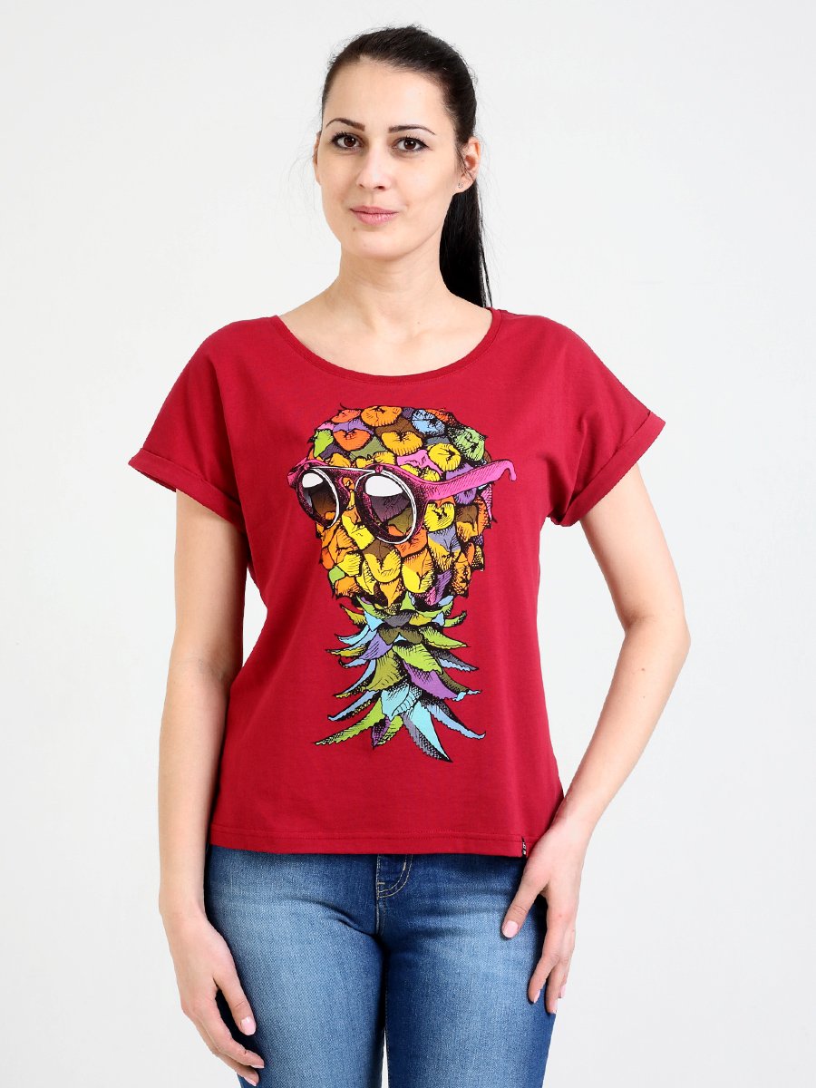 Женская футболка F5, Comfort fit (свободный силуэт), круглый вырез горловины, короткий цельнокроеный рукав с отворотами. Выполнена из классического трикотажного полотна.
