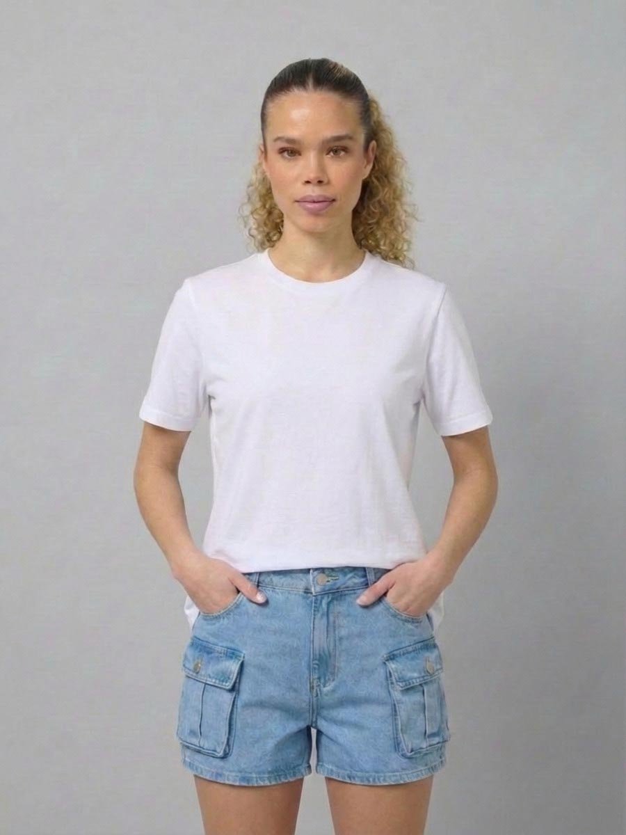 Женская футболка F5, Comfort fit (свободный силуэт), круглый вырез горловины, короткий рукав. Выполнена из классического трикотажного полотна.