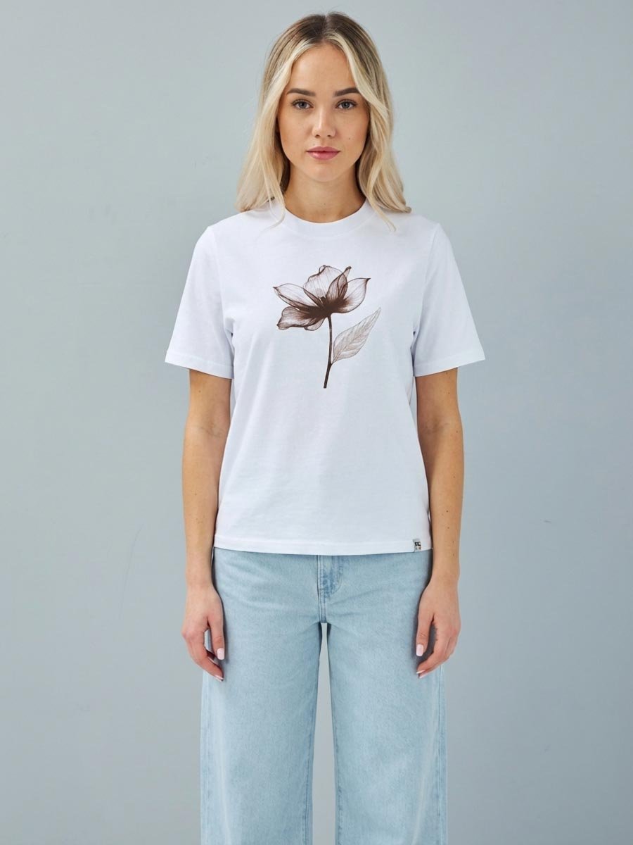 Женская футболка F5, Comfort fit (свободный силуэт), круглый вырез горловины, короткий рукав. Выполнена из классического трикотажного полотна.