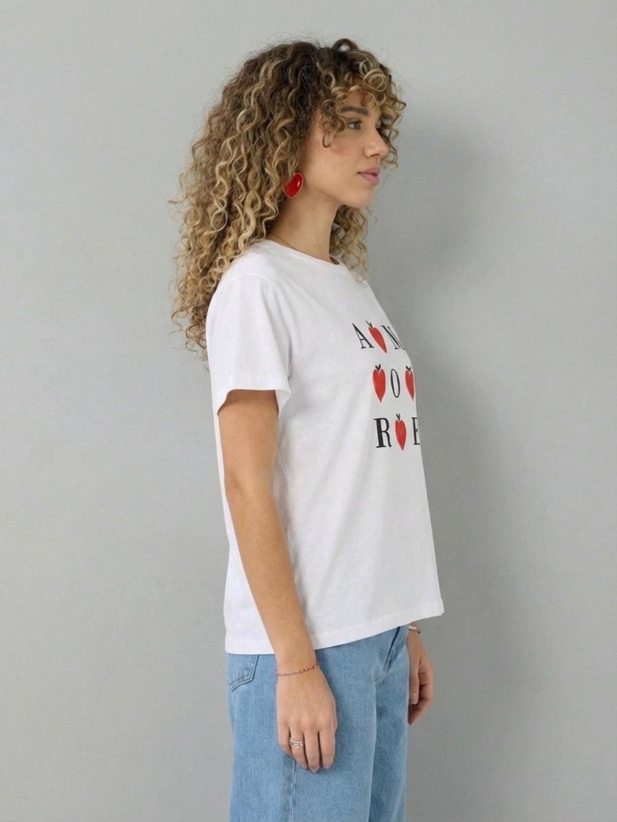 Женская футболка F5, Oversize fit (свободный силуэт), круглый вырез горловины, короткий цельнокроеный рукав. Выполнена из классического трикотажного полотна.